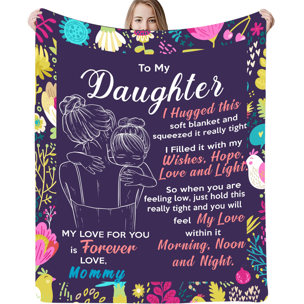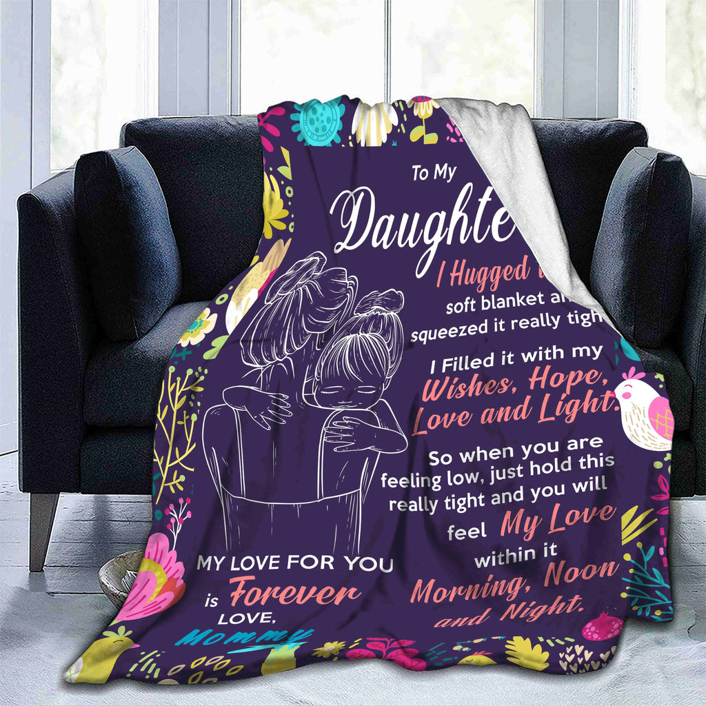 Blanket for Daughter Gifts - To My Daughter I Hugged This Soft Blanket and Squeezed It Really Tight - From Mommy, Birthday Christmas Everyday Encouragement, Inspirational Motivational