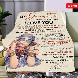 Blanket for Daughter Gifts - My Daughter Never Forget That I Love You, Be Brave Be Bold” From Mom, Birthday Christmas Graduation, Inspirational Motivational
