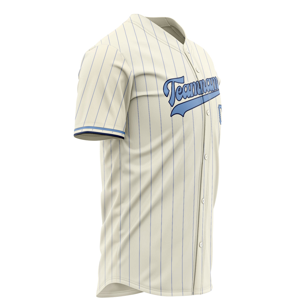 Custom Cream Baseball Jersey (With Light Blue Navy Pinstripe)