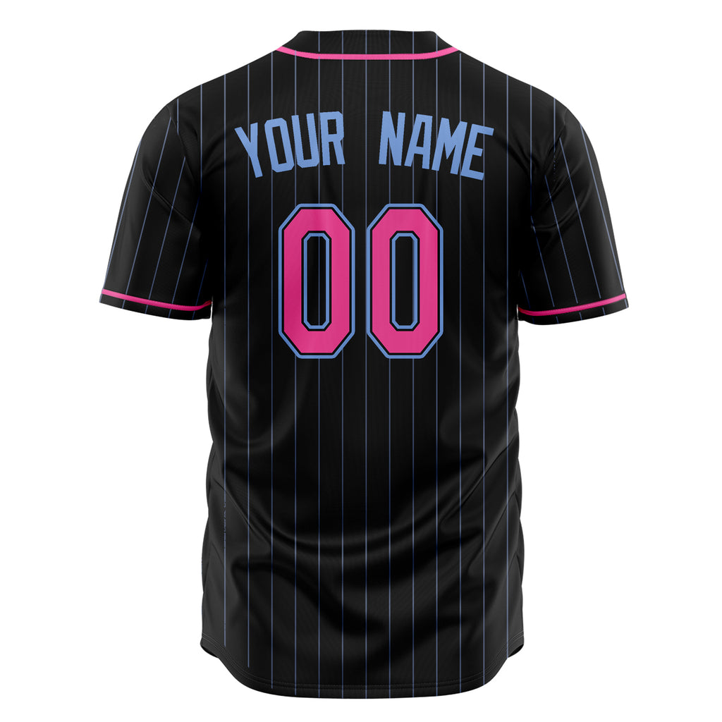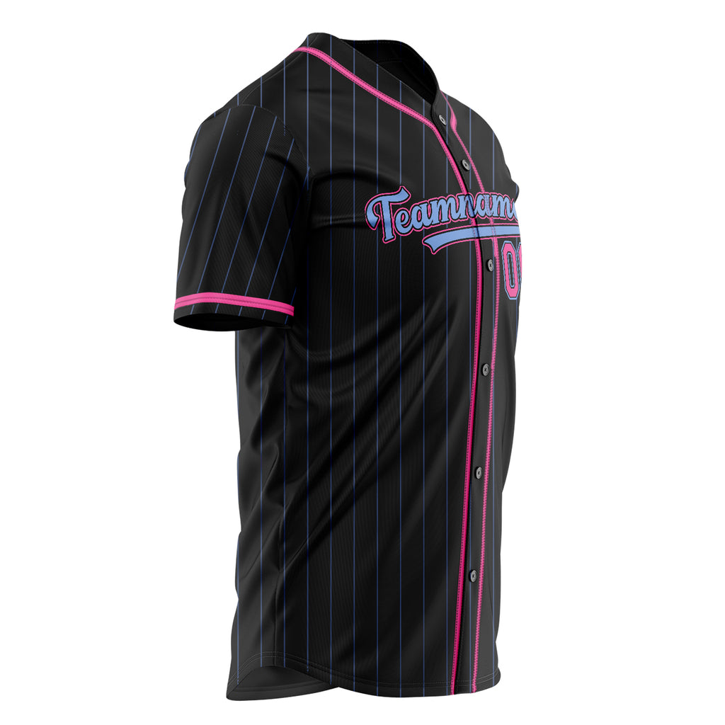 Custom Black Baseball Jersey (With Pink Light Blue Pinstripe)