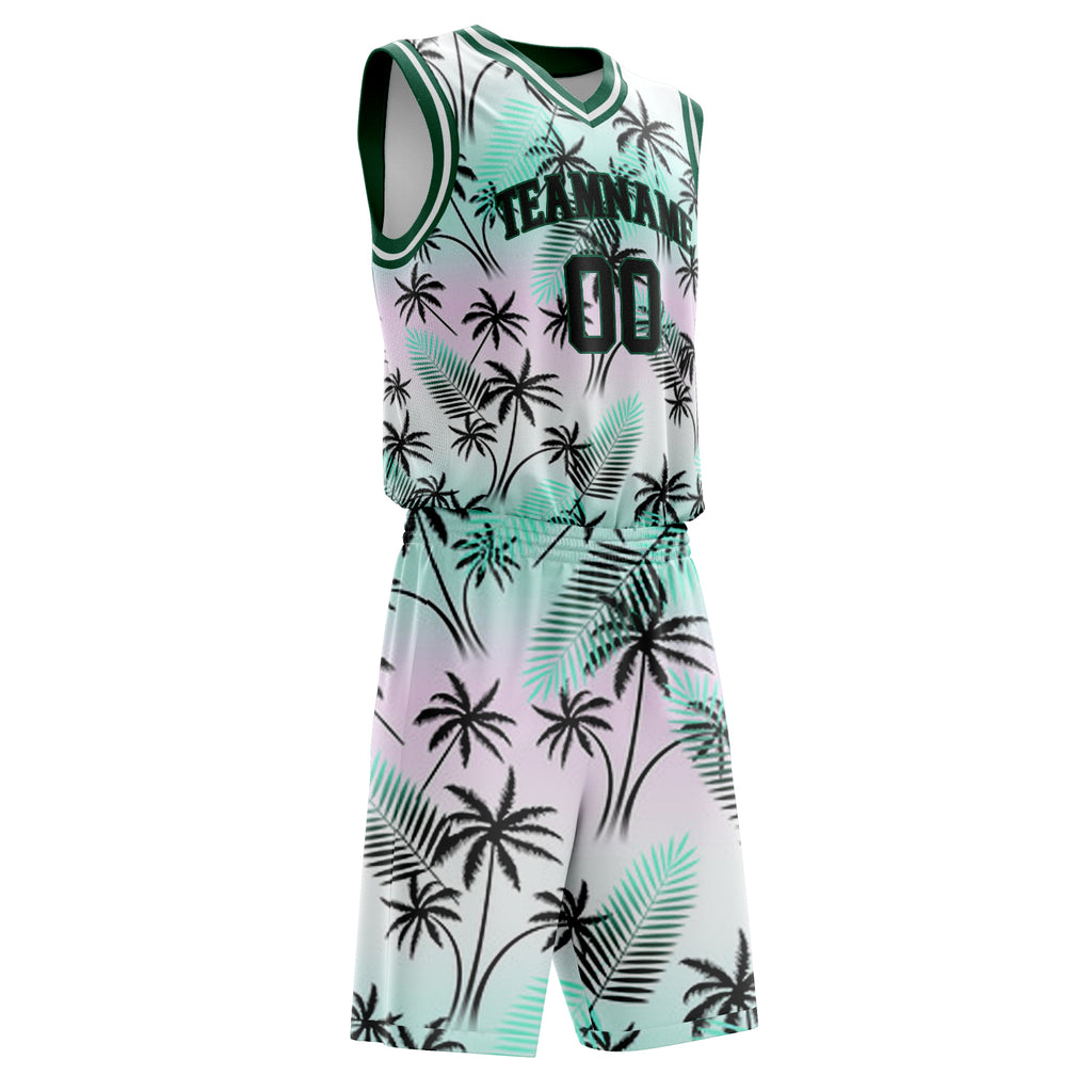 Custom Black Black Tropical Hawaii Palm Leaves Basketball Jersey