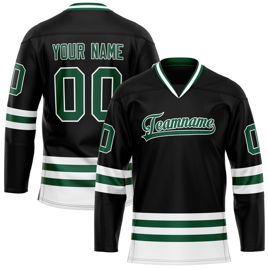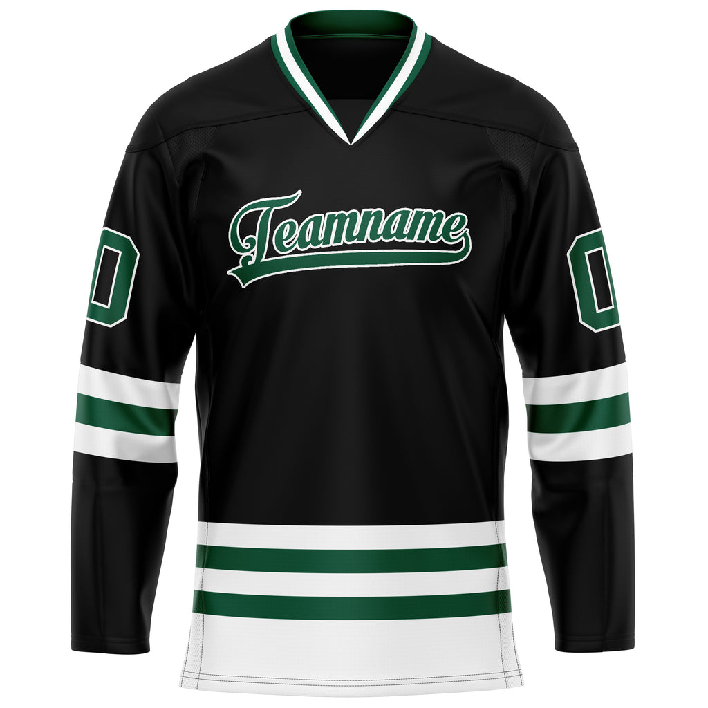 Custom Black Kelly Green Solid Colour Hockey Jersey
