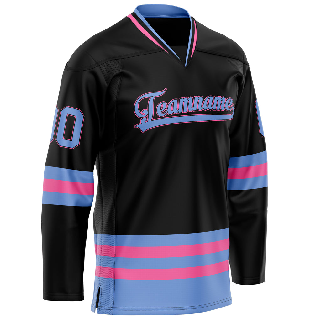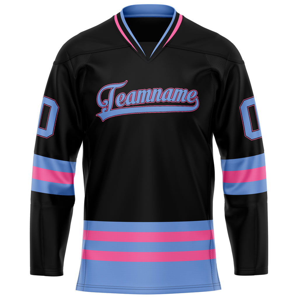 Custom Black Light Blue Solid Colour Hockey Jersey