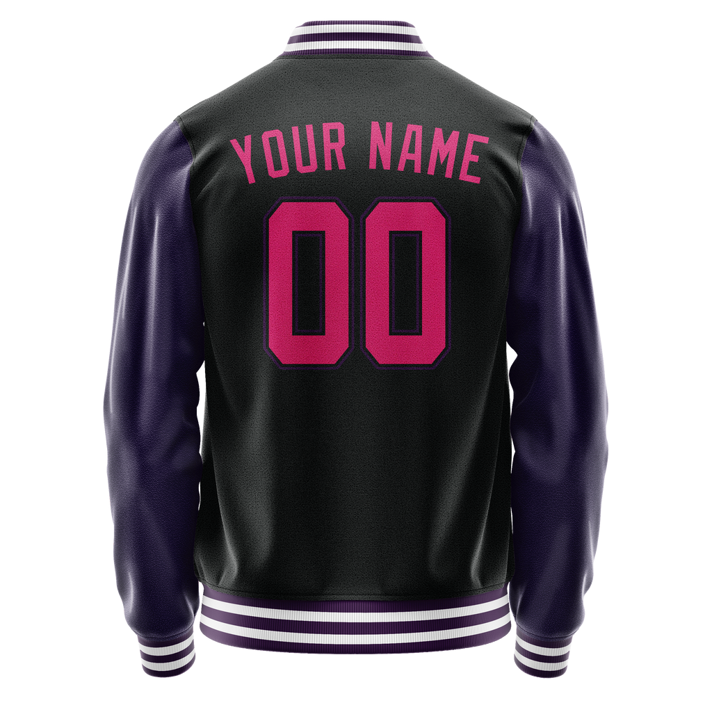 Custom Black Purple Solid Color Varsity Letterman Jacket