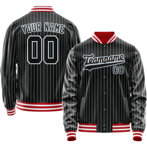 Custom Black White Gray Pinstripe Varsity Letterman Jacket