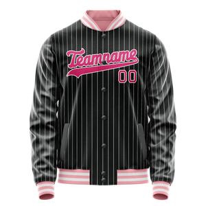 Custom Black Pink Pink Pinstripe Varsity Letterman Jacket