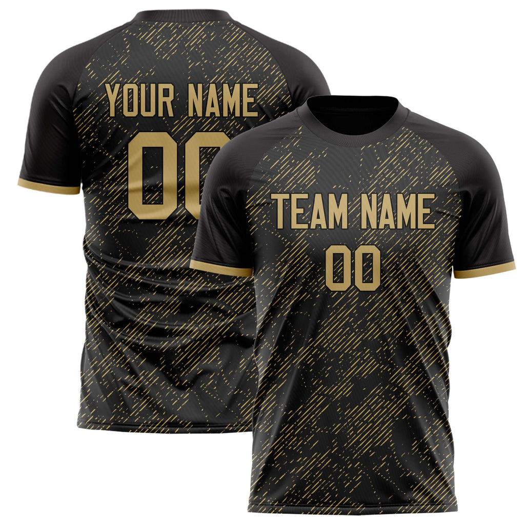 Custom Black Old Gold Pattern Soccer Jersey