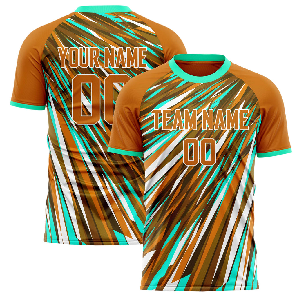 Custom Brown Teal Pattern Soccer Jersey