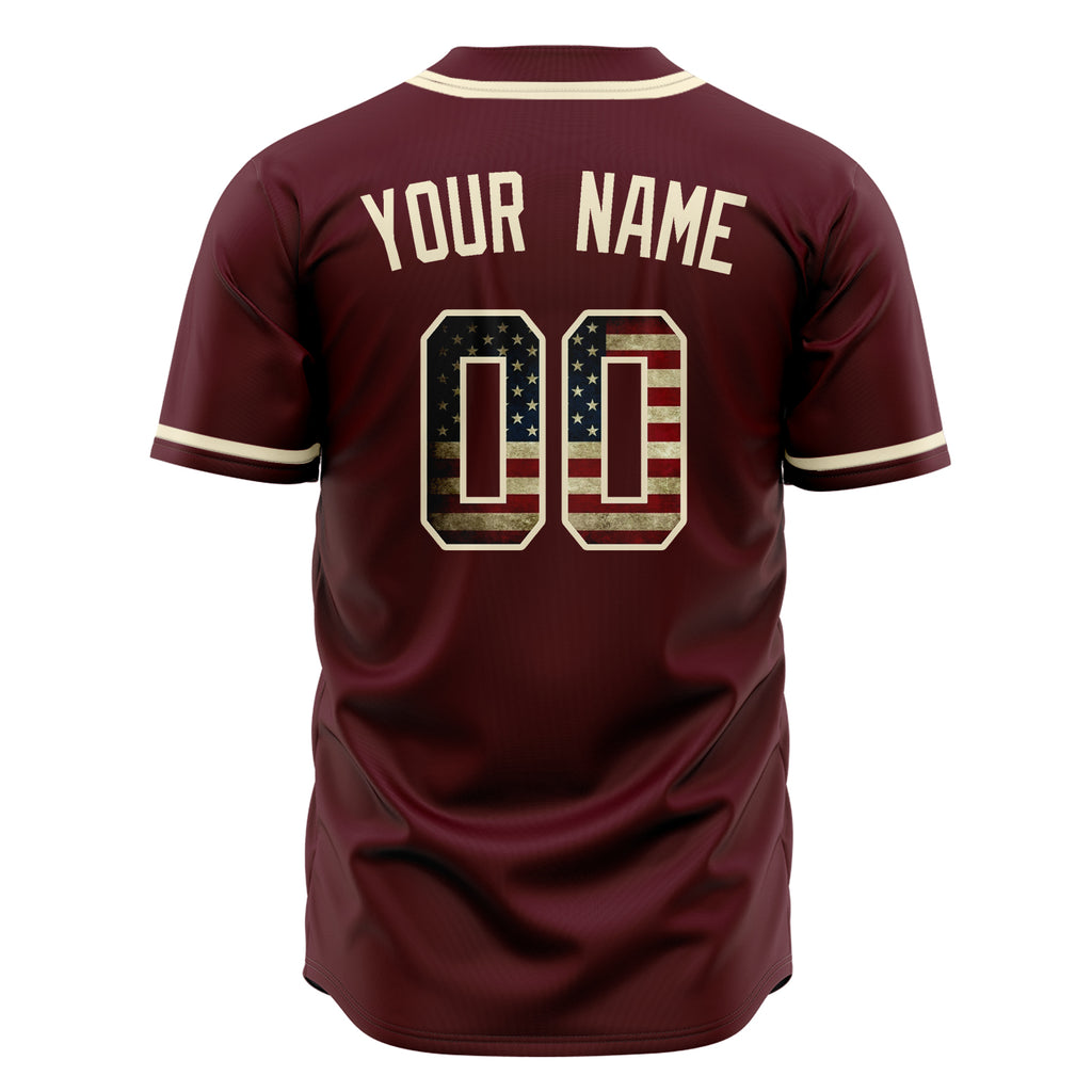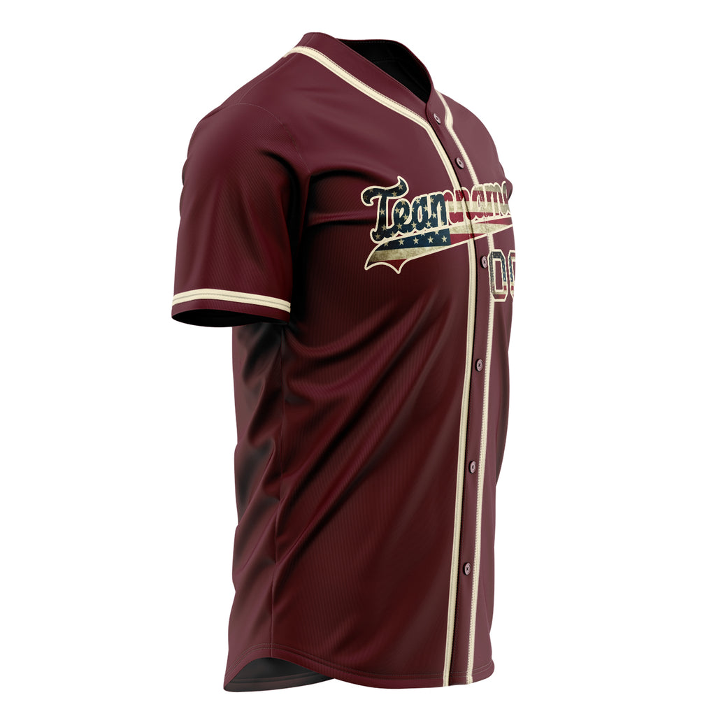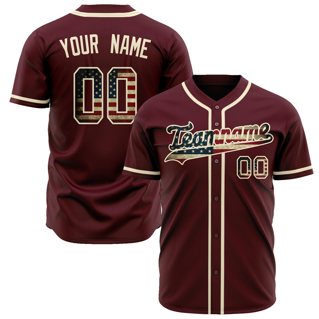 Custom Burgundy Baseball Jersey (With Cream Vintage USA Flag)