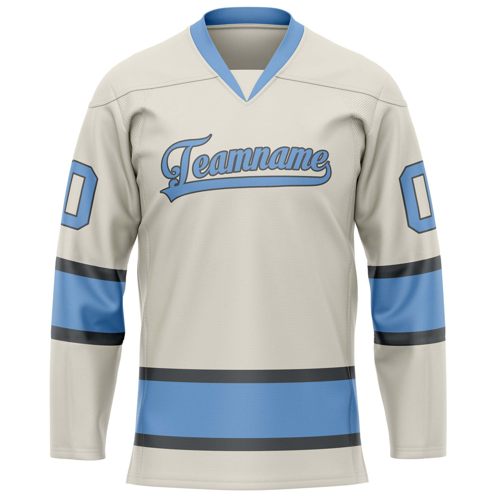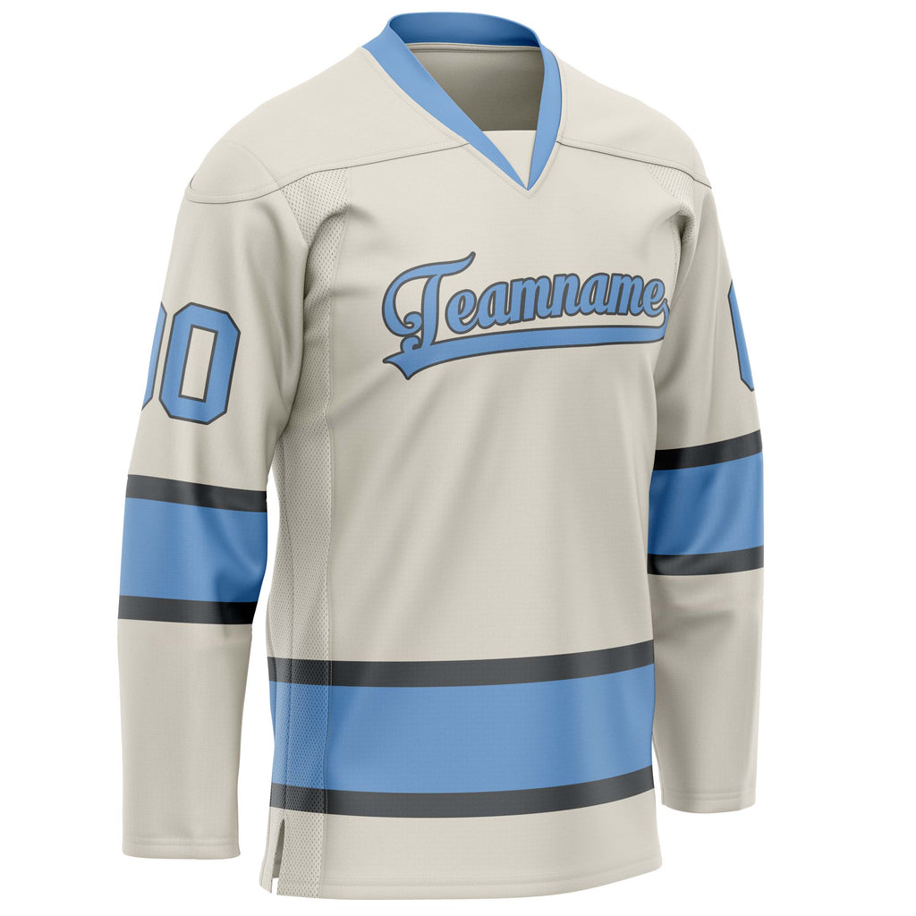 Custom Cream Light Blue Solid Colour Hockey Jersey