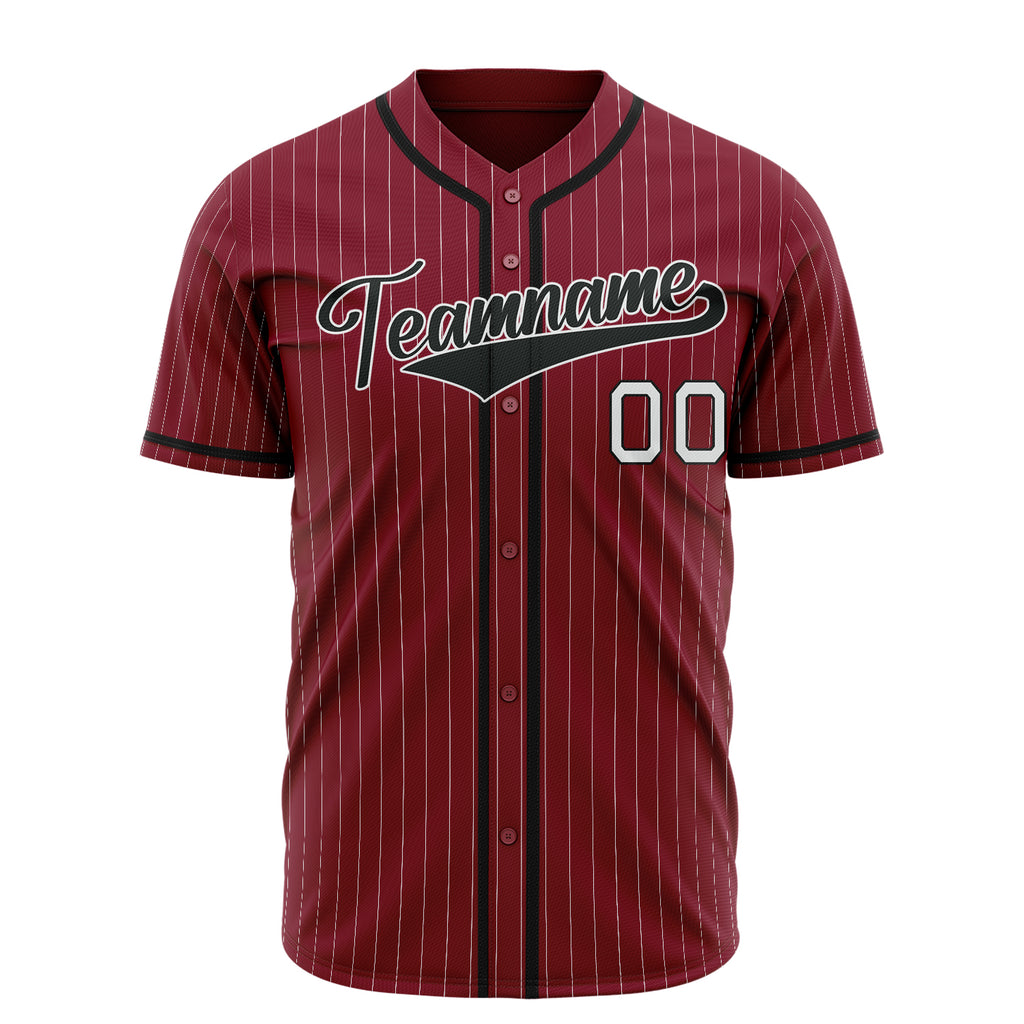 Custom Crimson Baseball Jersey (With Black White Pinstripe)