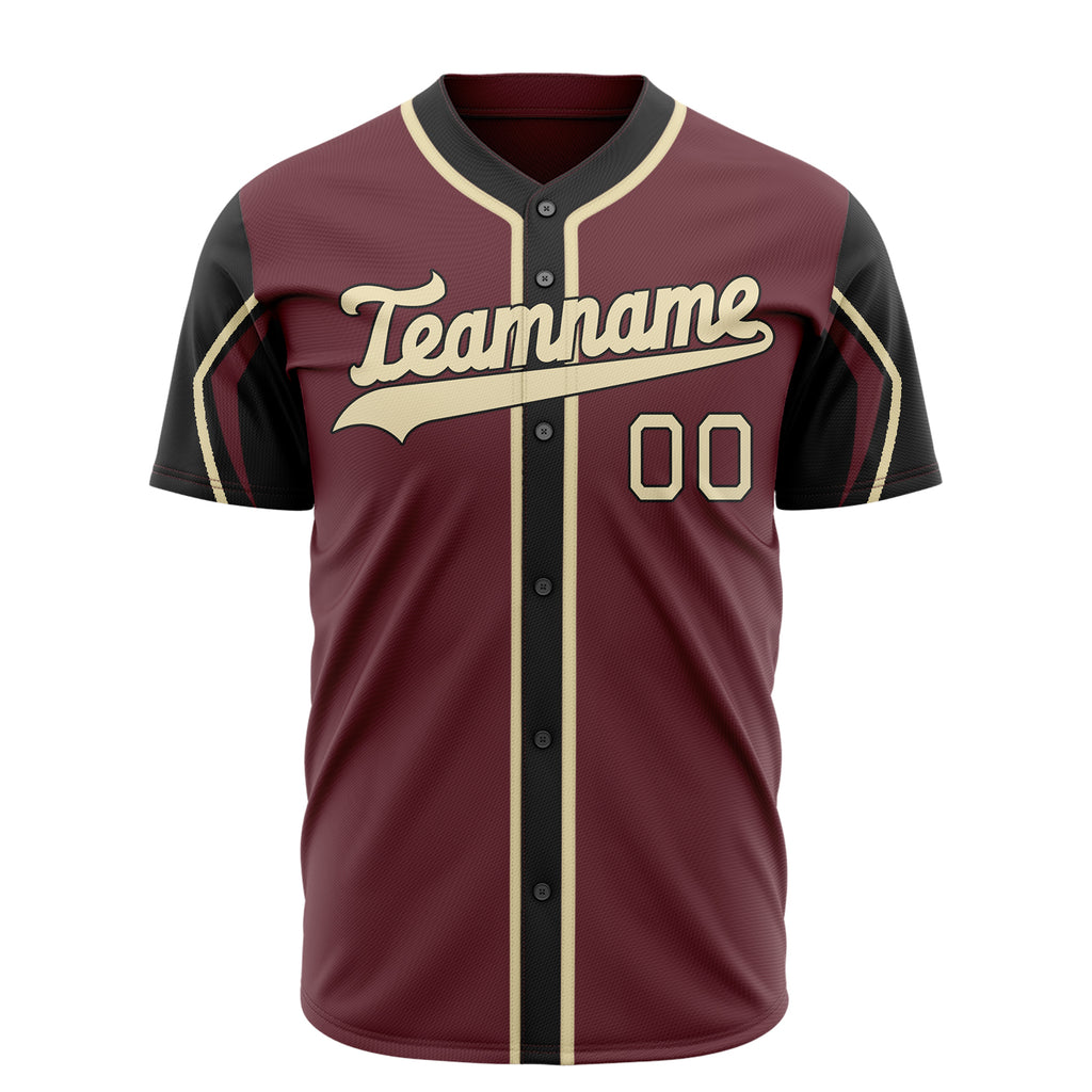 Custom Crimson Baseball Jersey (With Cream 3 Colors Arm Shapes)