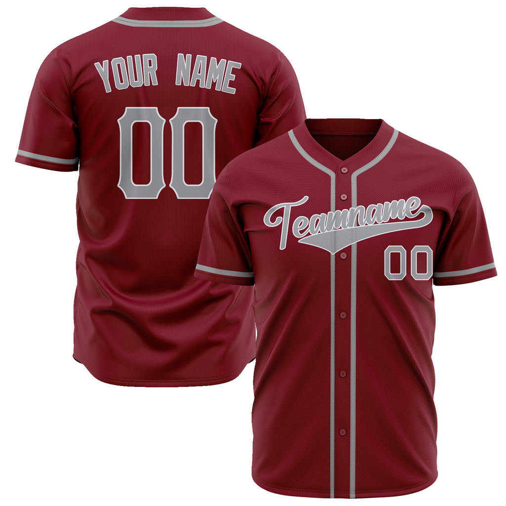 Custom Crimson Baseball Jersey (With Steel Gray Color)