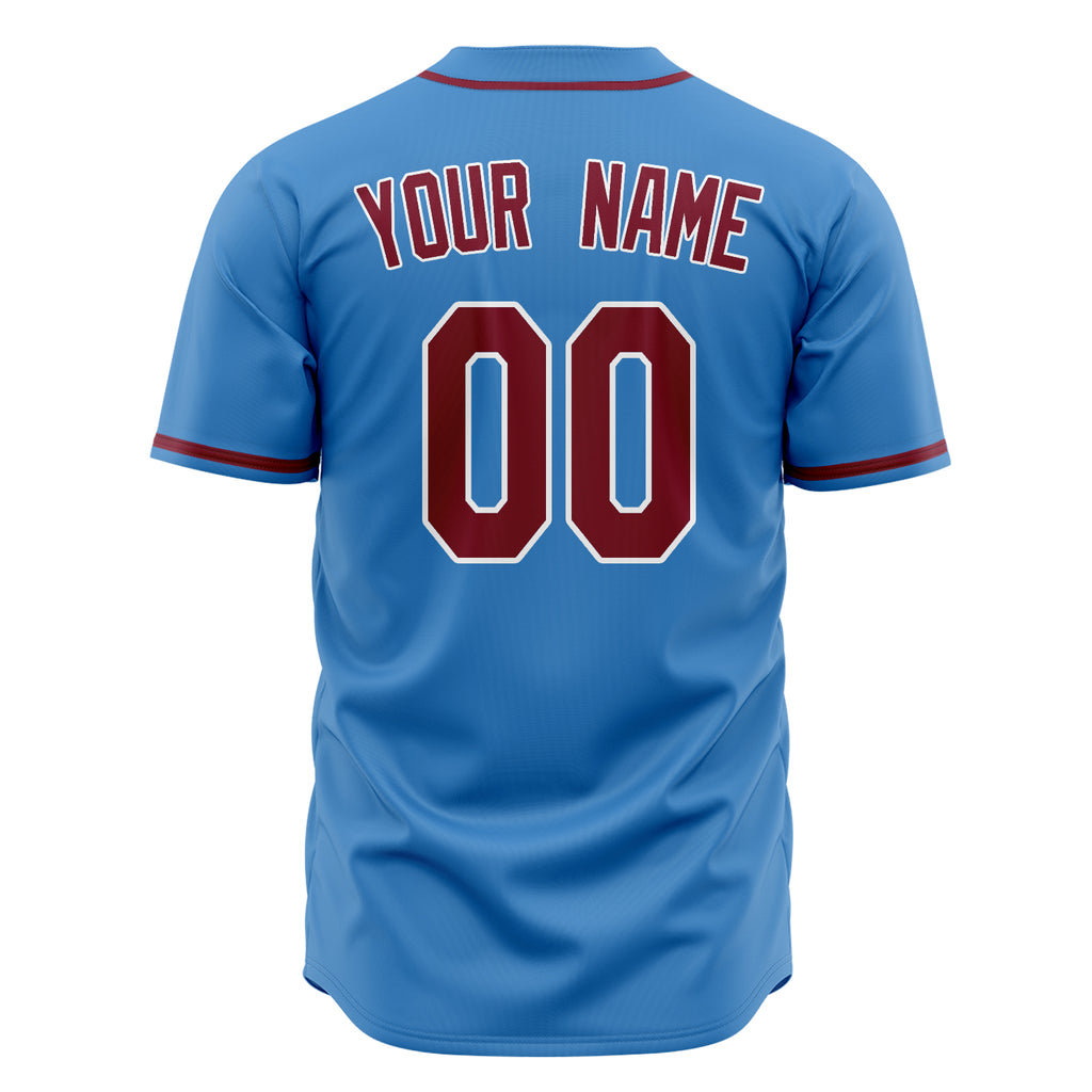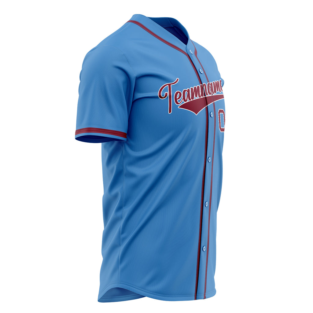 Custom Powder Blue Baseball Jersey (With Crimson Color)