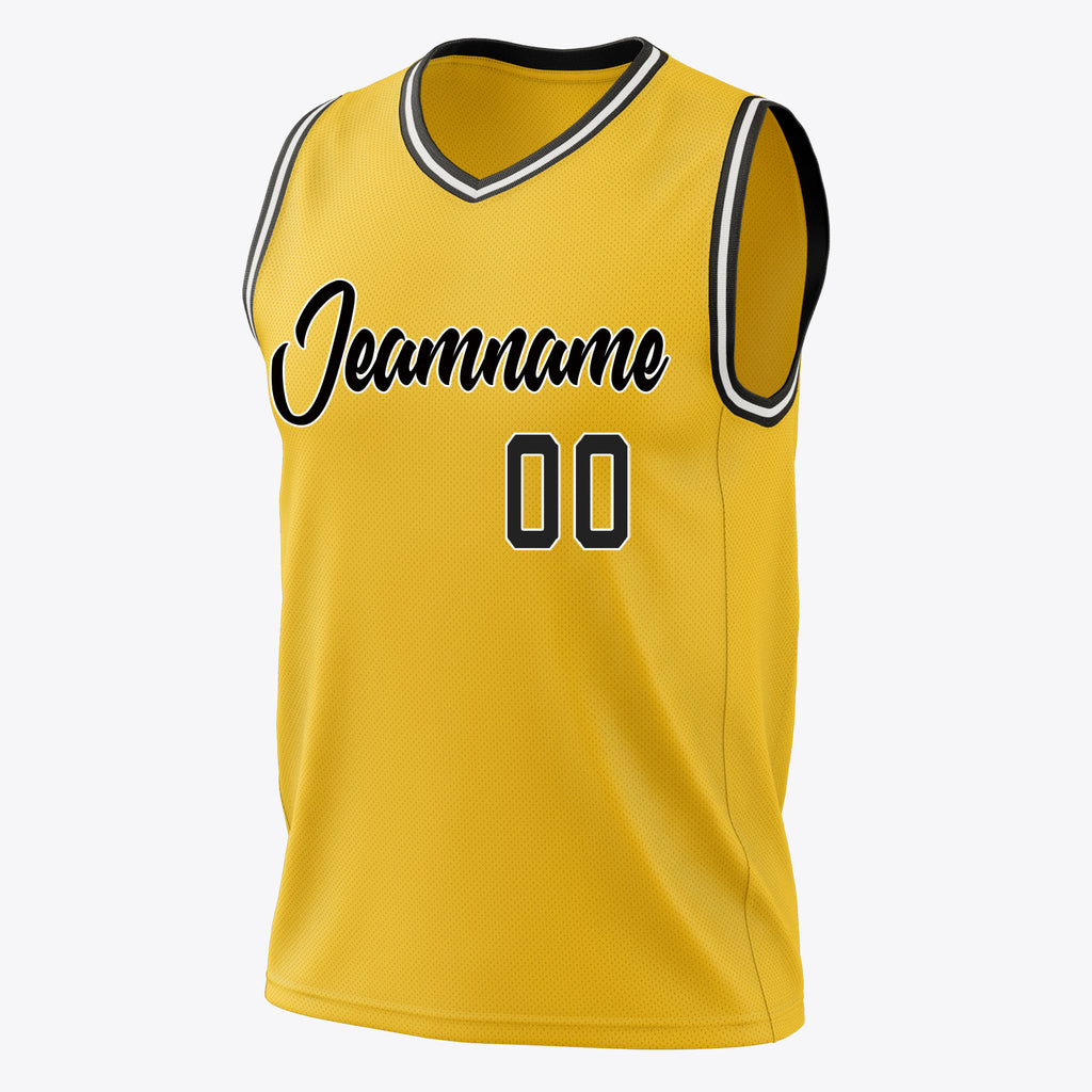 Custom Gold Black Solid Color Basketball Jersey