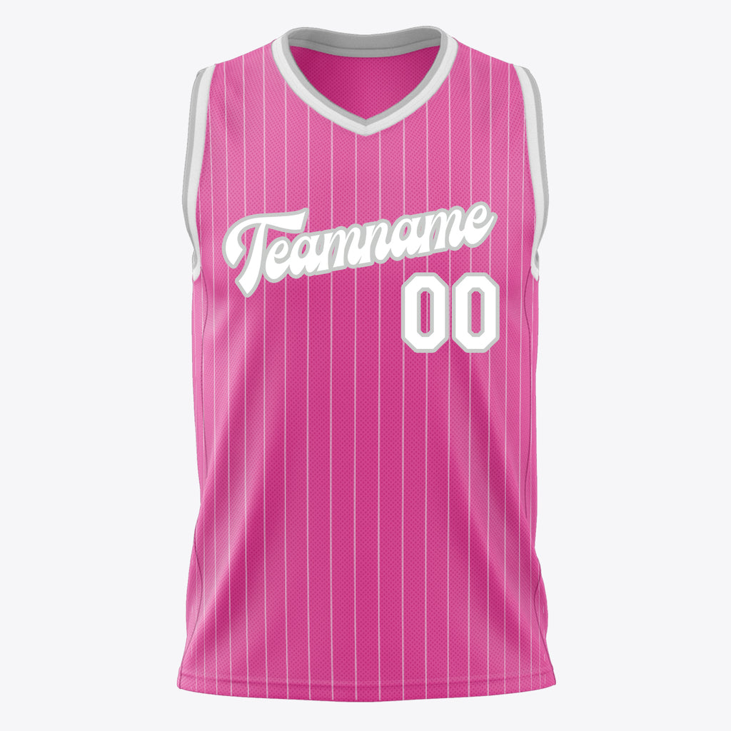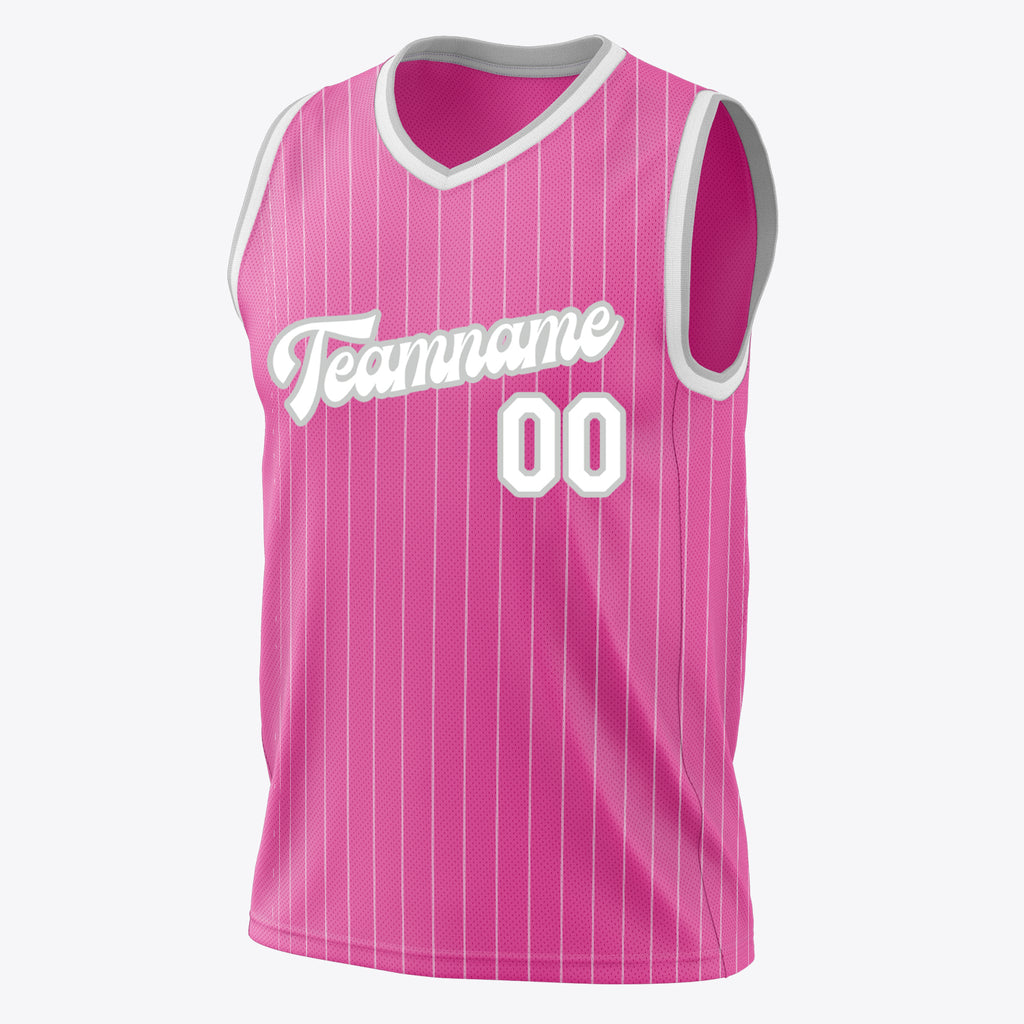 Custom Pink White Pinstripe Basketball Jersey