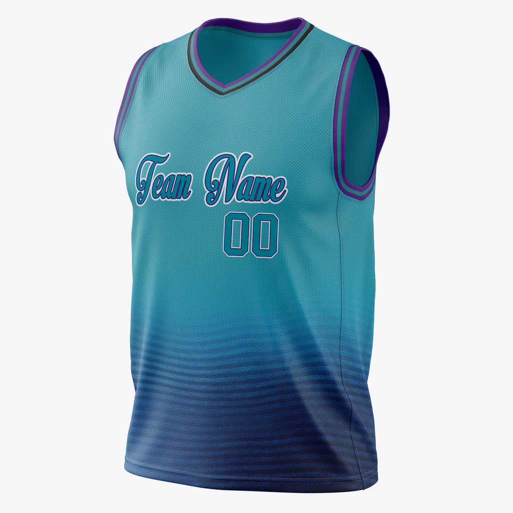 Custom Teal Purple Solid Color Basketball Jersey