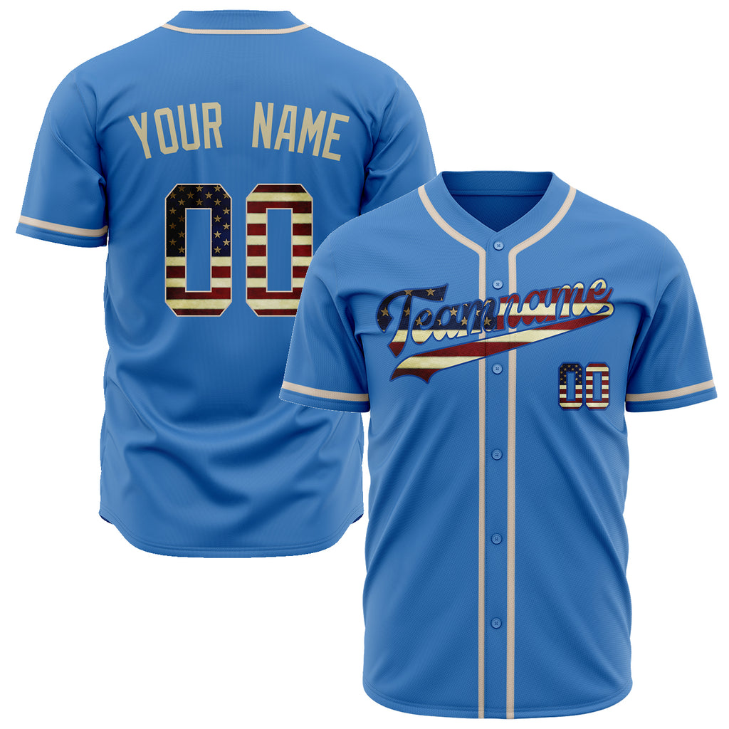 Custom Electric Blue Baseball Jersey (With Cream Vintage USA Flag)