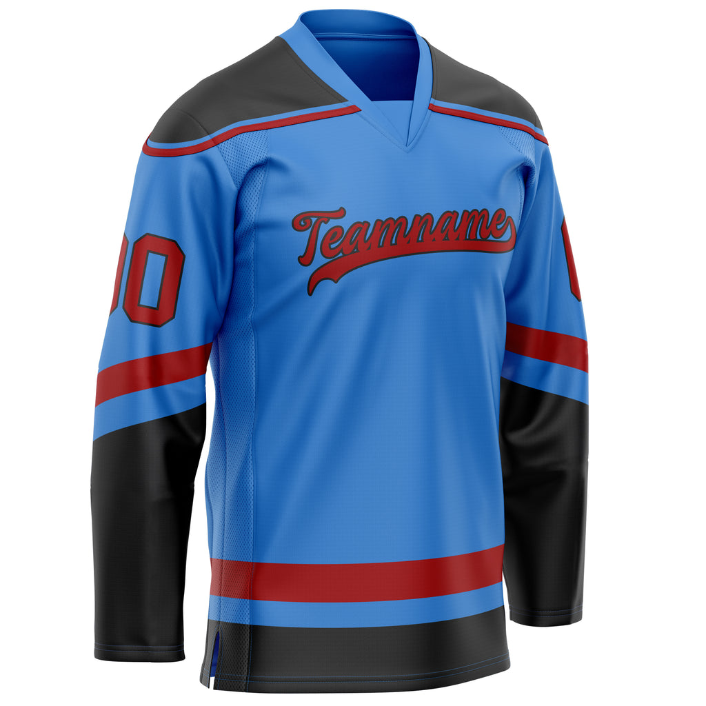 Custom Electric Blue Crimson Solid Colour Hockey Jersey