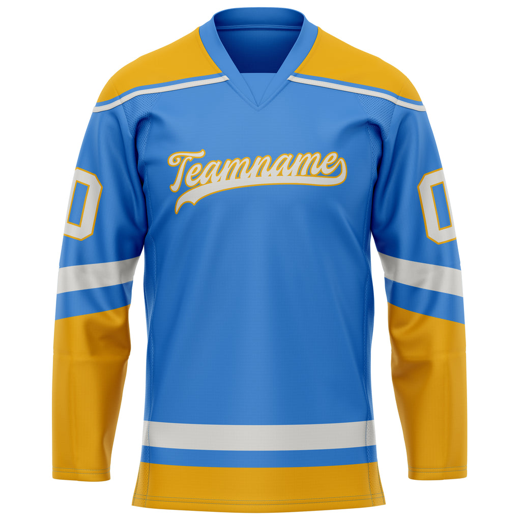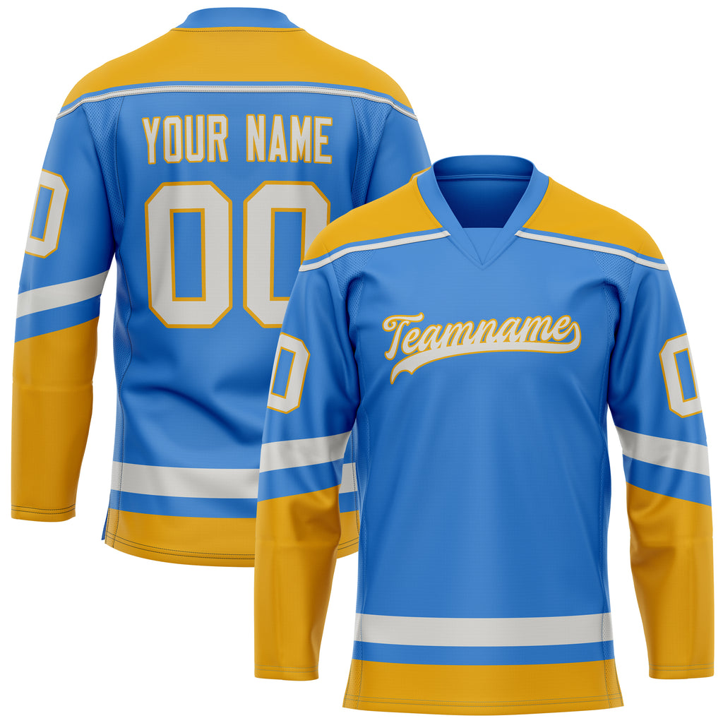 Custom Electric Blue Gold Solid Colour Hockey Jersey