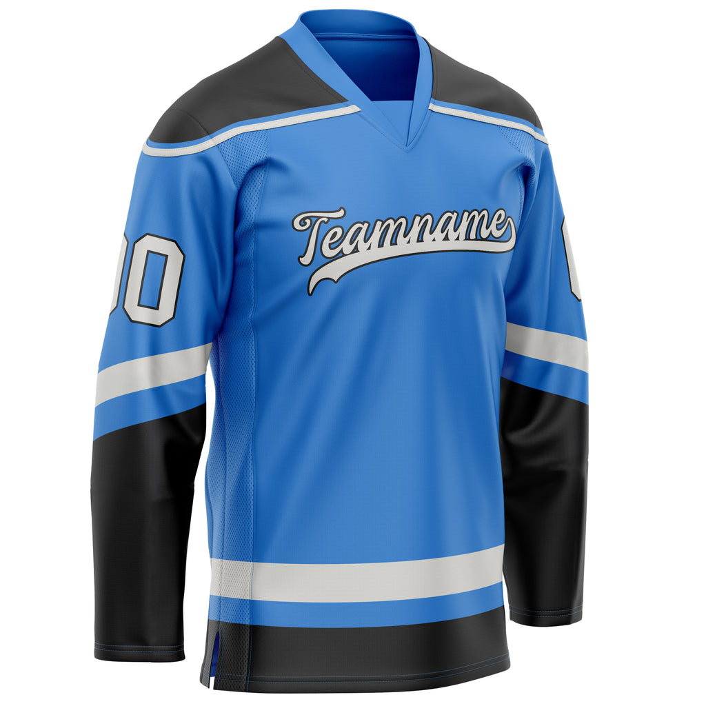 Custom Electric Blue Gray Solid Colour Hockey Jersey