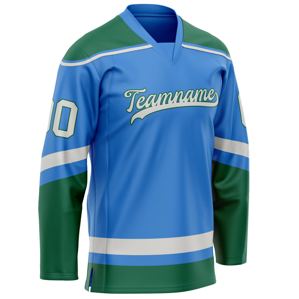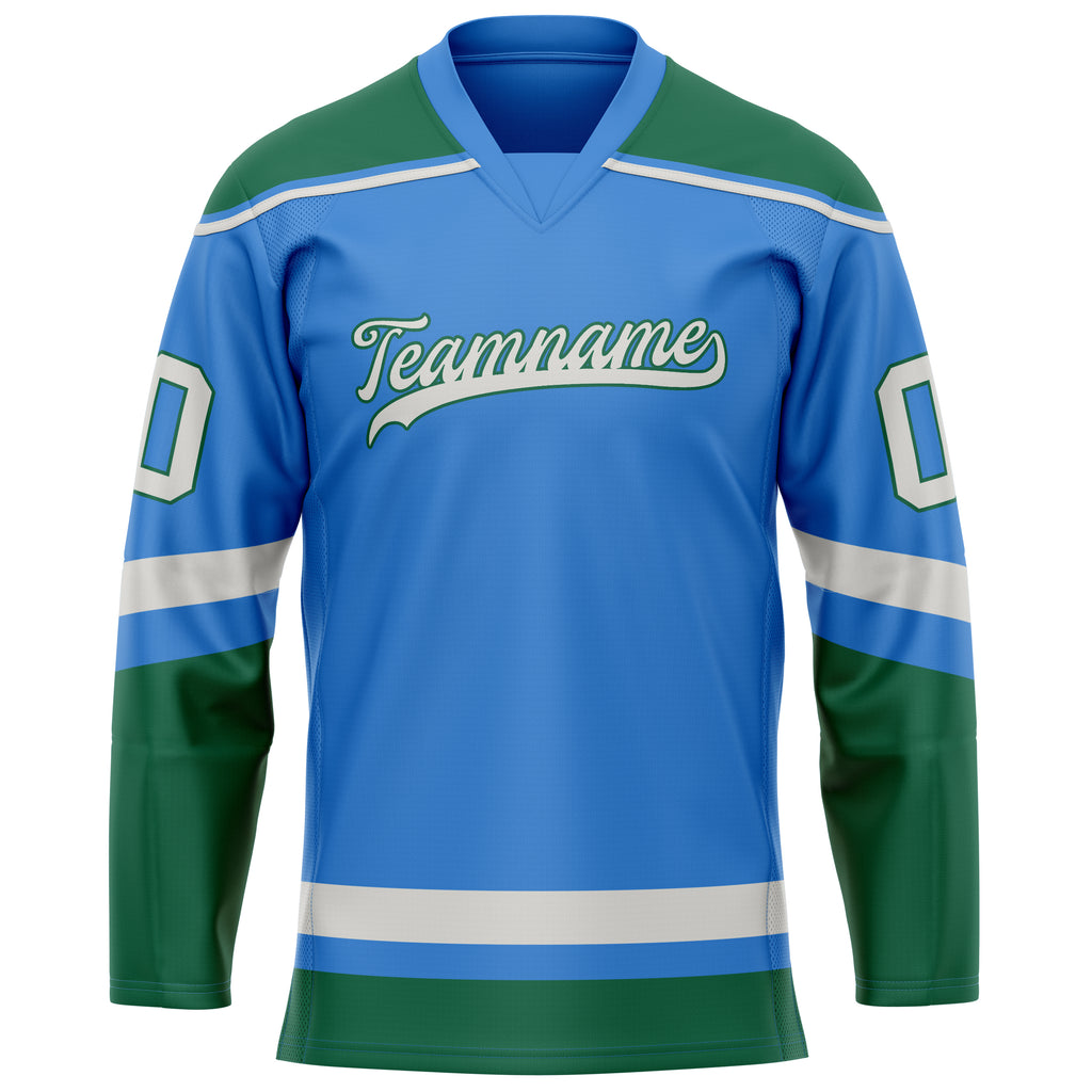 Custom Electric Blue Kelly Green Solid Colour Hockey Jersey