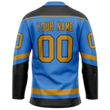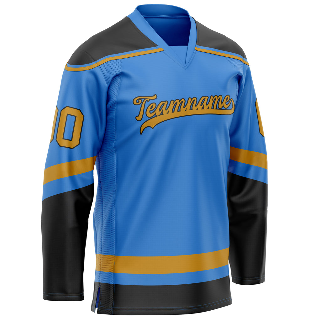 Custom Electric Blue Old Gold Solid Colour Hockey Jersey