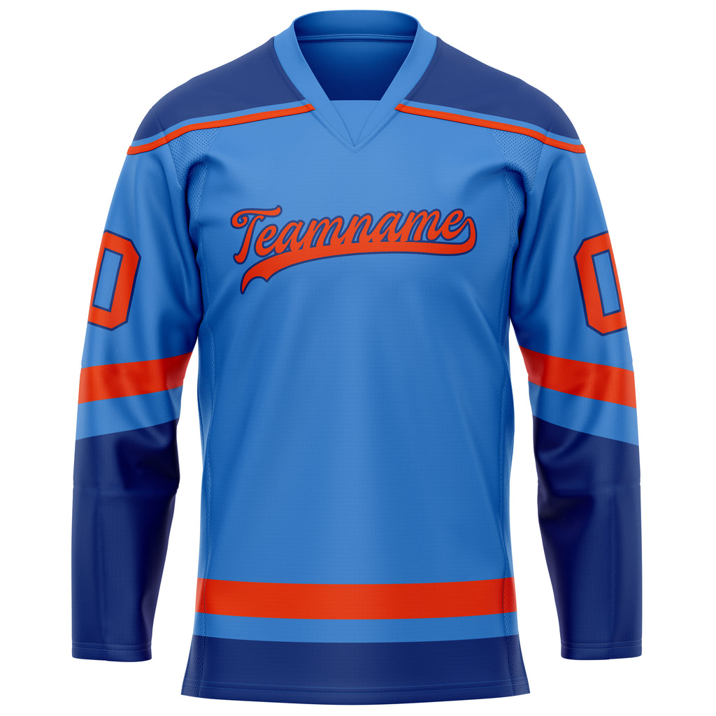 Custom Electric Blue Red Solid Colour Hockey Jersey