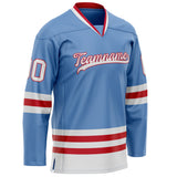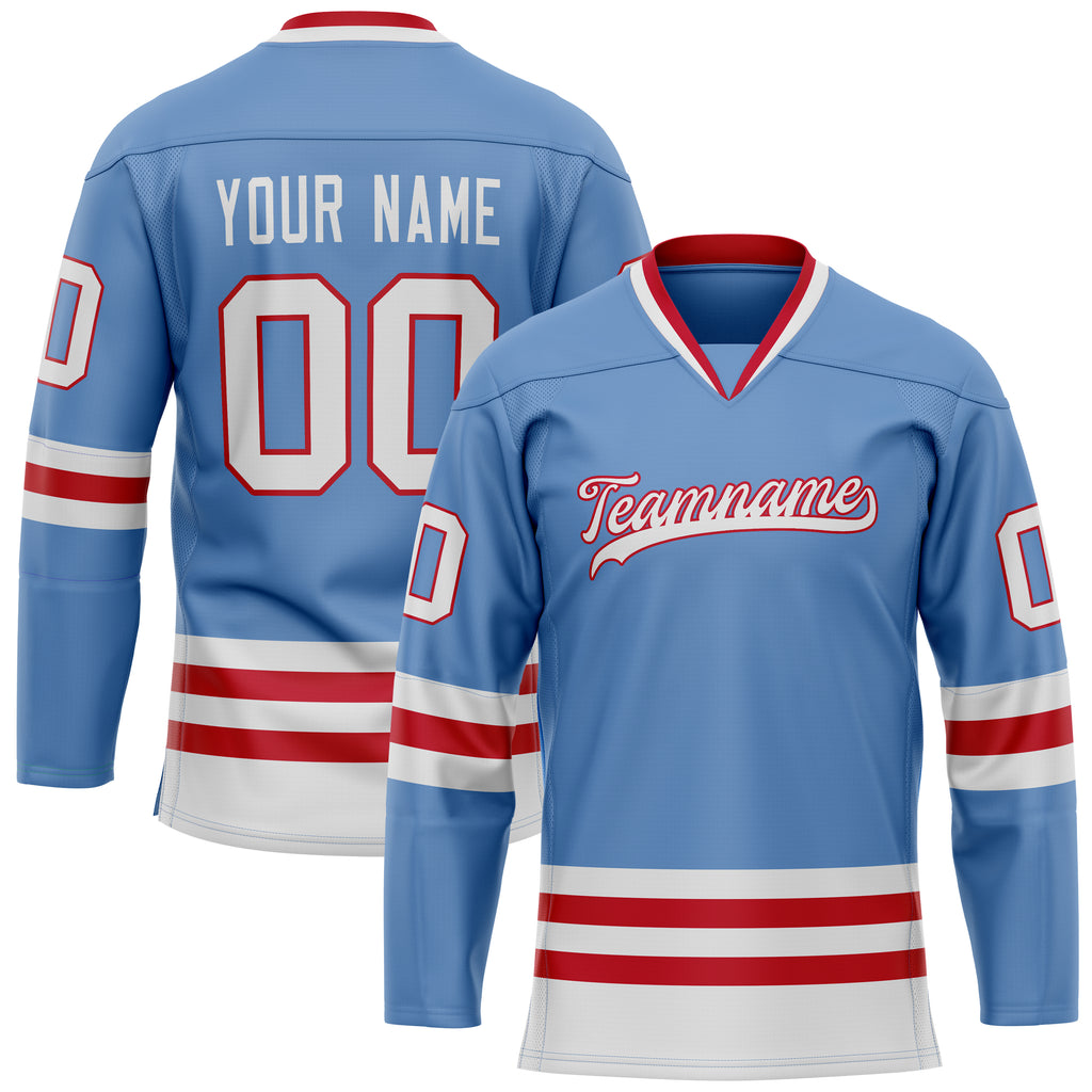 Custom Light Blue Red Solid Colour Hockey Jersey