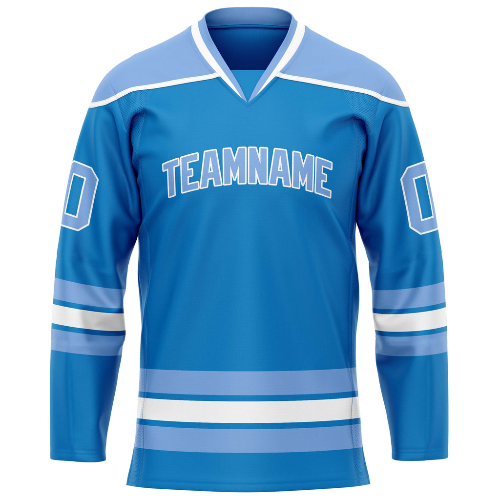 Custom Blue Light Blue Solid Colour Hockey Jersey