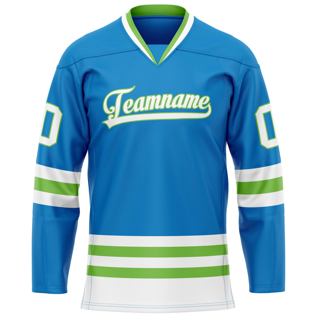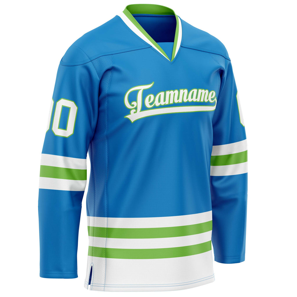 Custom Blue Neon Green Solid Colour Hockey Jersey