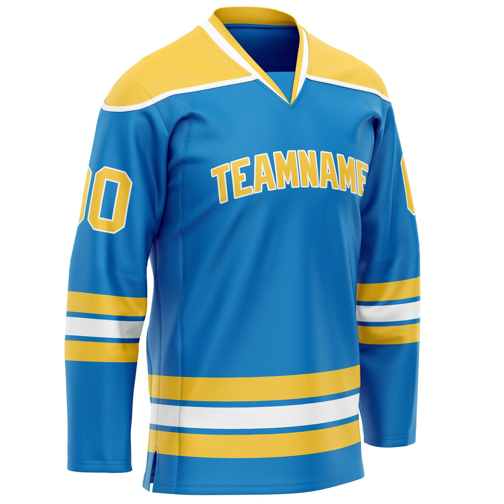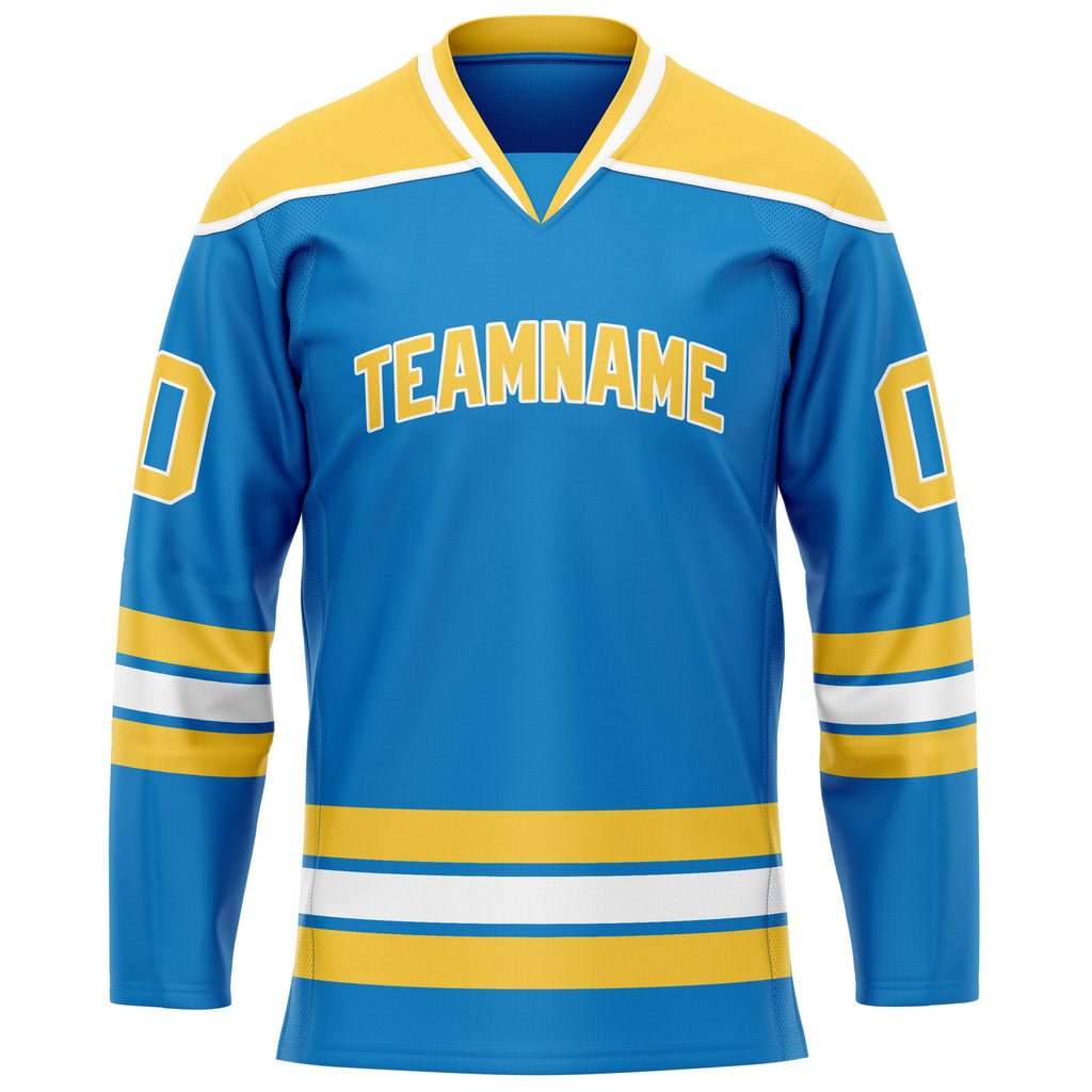 Custom Blue Yellow Solid Colour Hockey Jersey