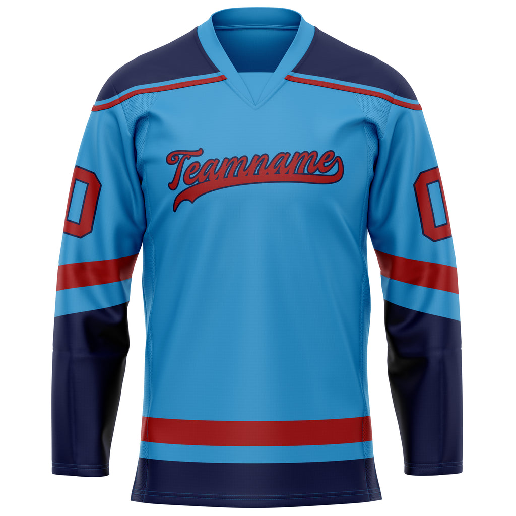 Custom Sky Blue Crimson Solid Colour Hockey Jersey