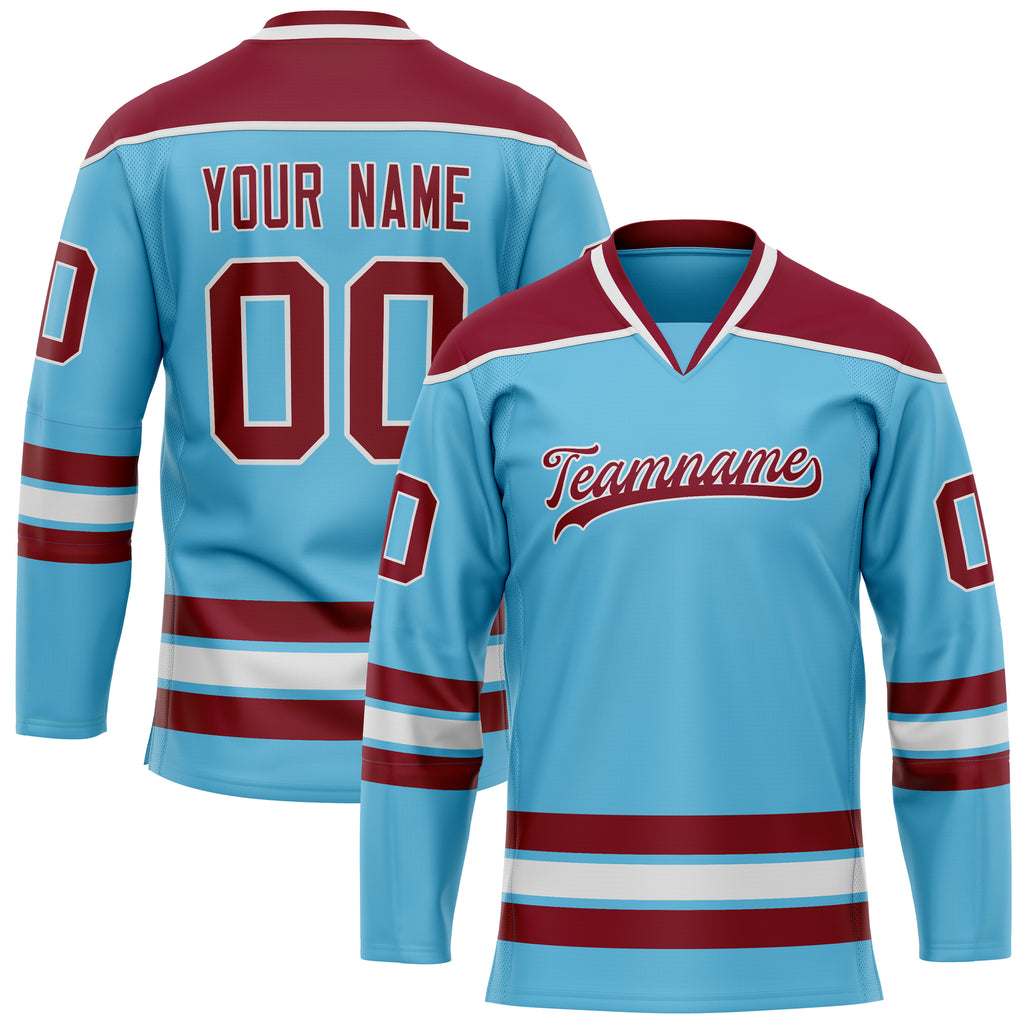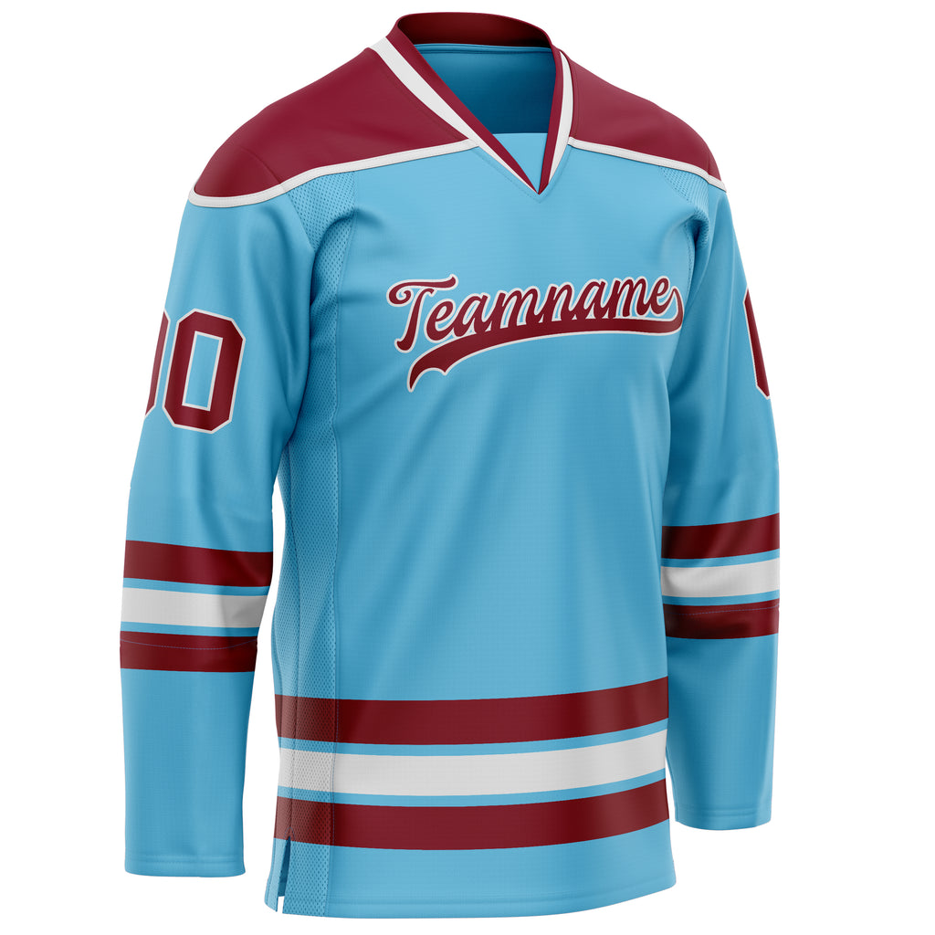 Custom Sky Blue Crimson Solid Colour Hockey Jersey