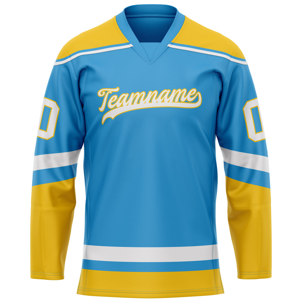 Custom Sky Blue Gold Solid Colour Hockey Jersey