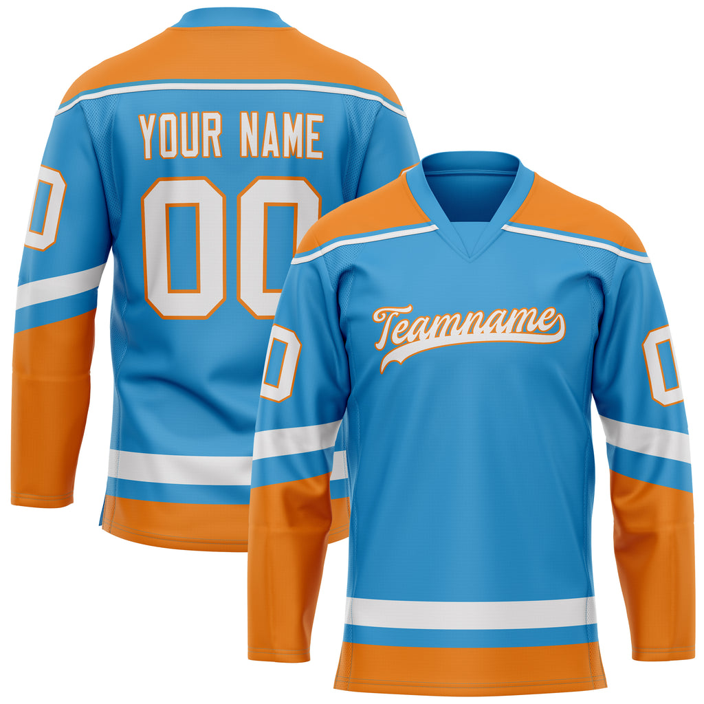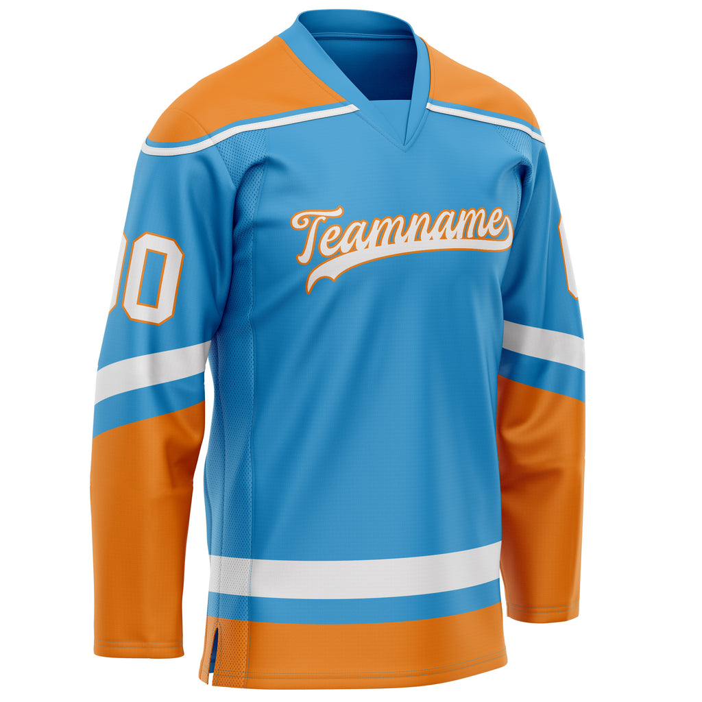 Custom Sky Blue Orange Solid Colour Hockey Jersey
