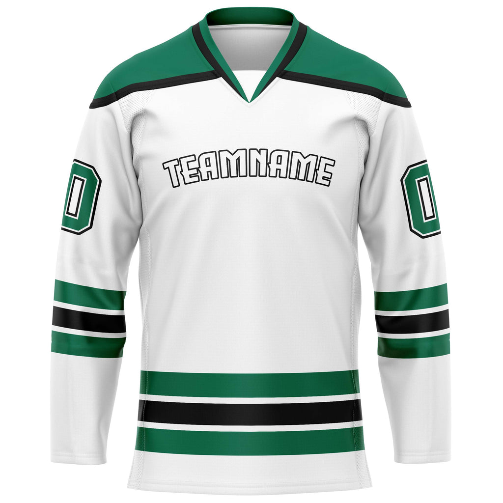 Custom White Kelly Green Solid Colour Hockey Jersey