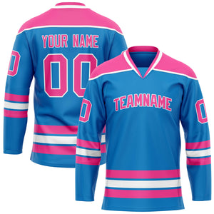 Custom Blue Pink Solid Colour Hockey Jersey