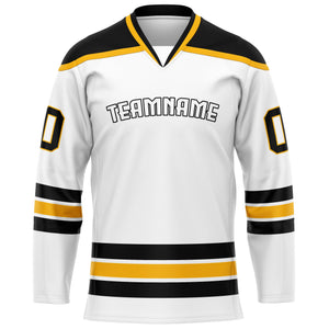Custom White Old Gold Solid Colour Hockey Jersey