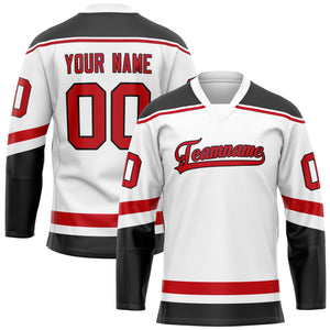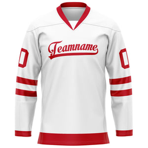 Custom White Red Solid Colour Hockey Jersey
