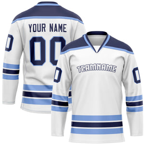 Custom White Navy Solid Colour Hockey Jersey