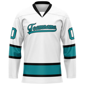Custom White Teal Solid Colour Hockey Jersey