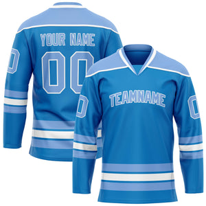 Custom Blue Light Blue Solid Colour Hockey Jersey