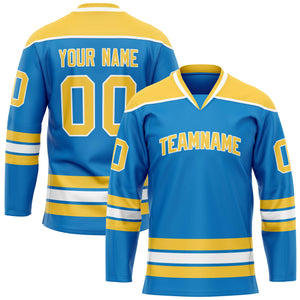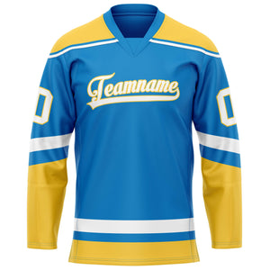 Custom Blue Yellow Solid Colour Hockey Jersey