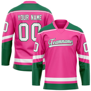 Custom Pink Kelly Green Solid Colour Hockey Jersey