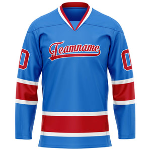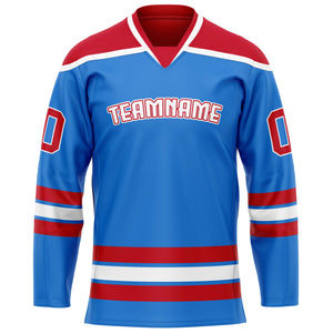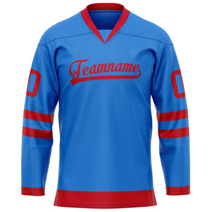 Custom Powder Blue Red Solid Colour Hockey Jersey