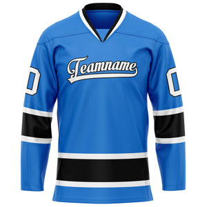 Custom Powder Blue Black Solid Colour Hockey Jersey