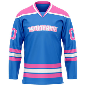 Custom Pink Light Blue Solid Colour Hockey Jersey
