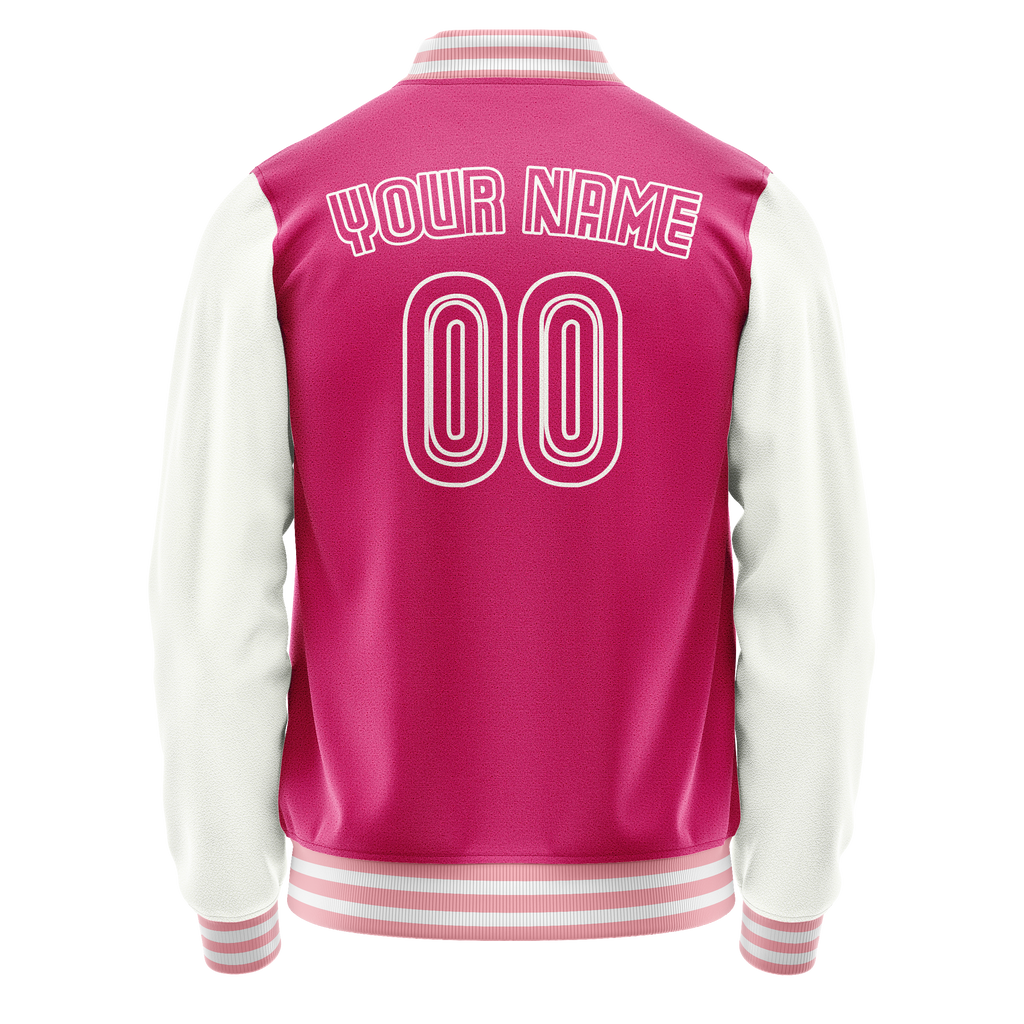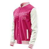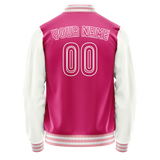 Custom Pink White Solid Color Varsity Letterman Jacket