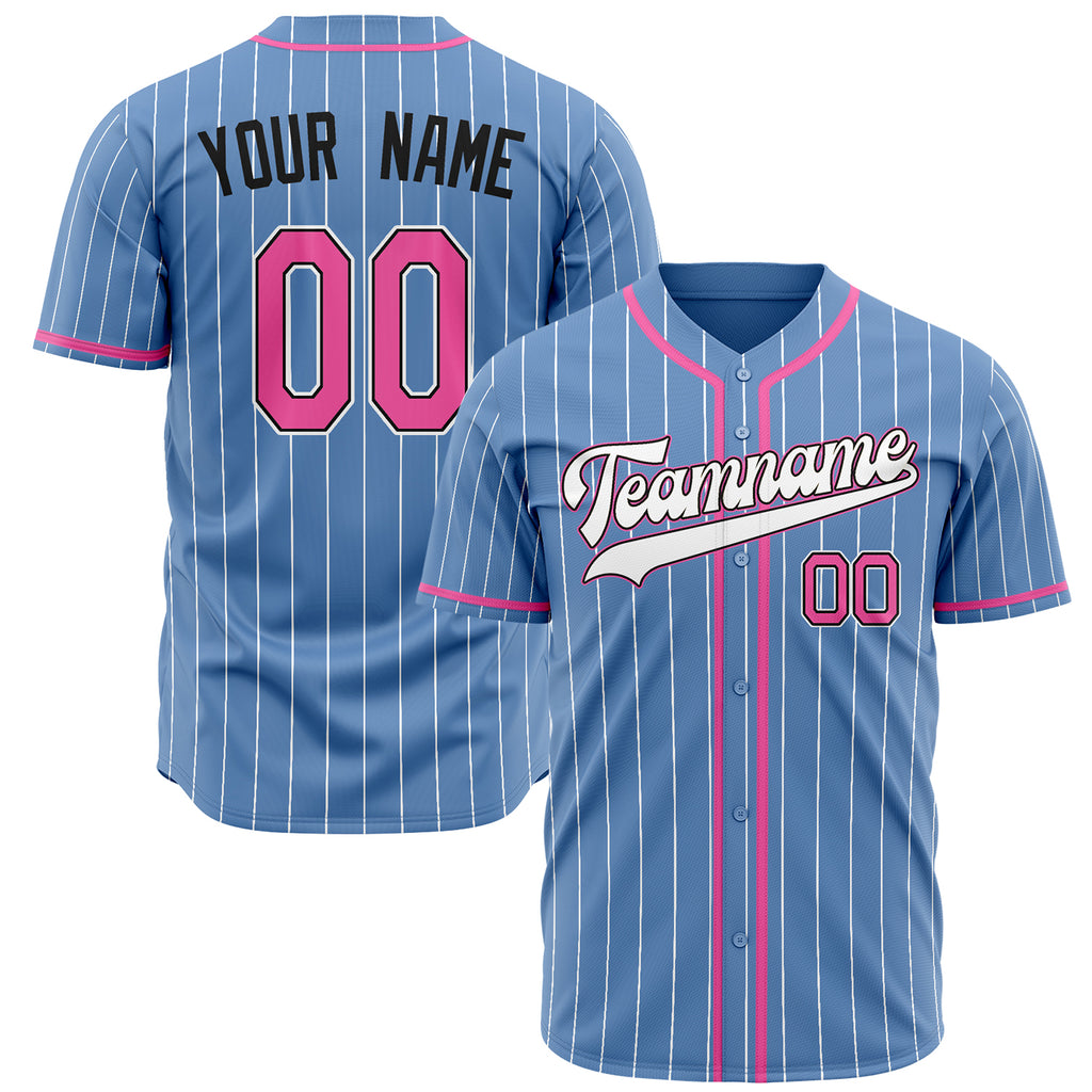 Custom Light Blue Baseball Jersey (With Pink White Pinstripe)